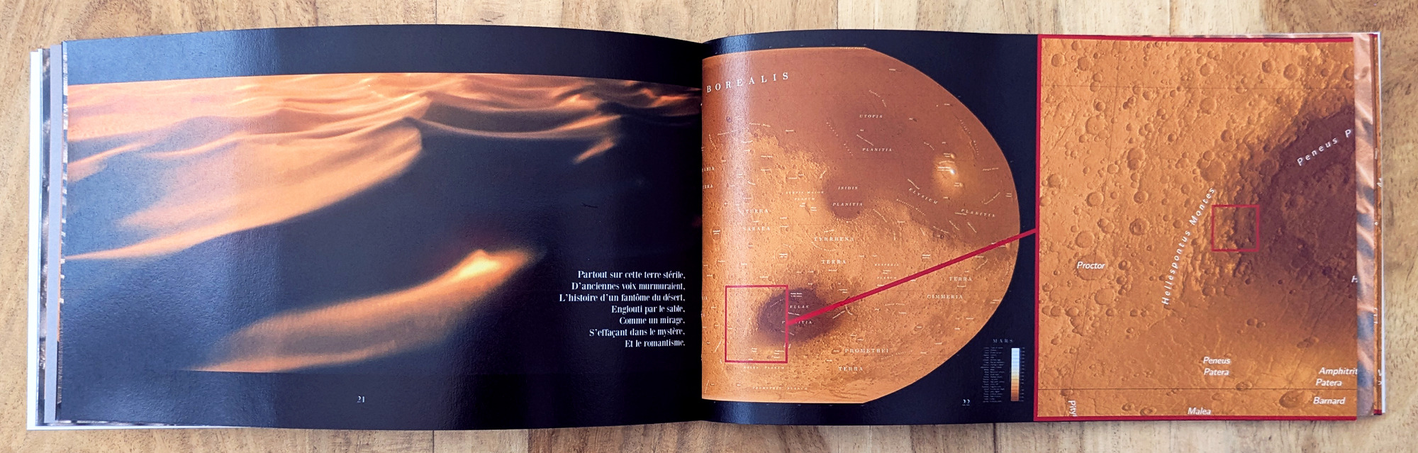 Lorsque le vent venait, le sable entrait partout. J’en ai trouvé, rentrant chez moi après quarante huit heures d’absence, toutes portes et volets clos, des couches suffisamment épaisses, sur les meubles, pour être modelées par le vent. Mon bureau était couvert de dunes, pareil, en petit, au désert qui ressemble, vu d’avion à un morceau de lune. Au coin du désert - Alexandre Vialatte - 1938