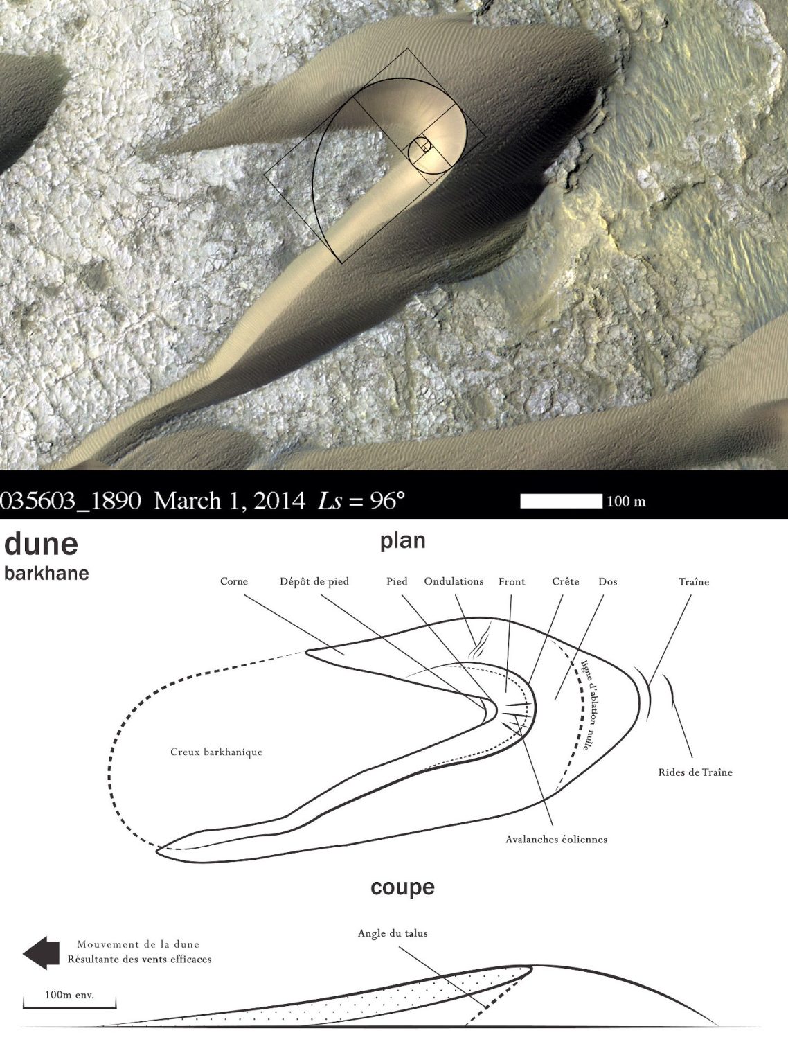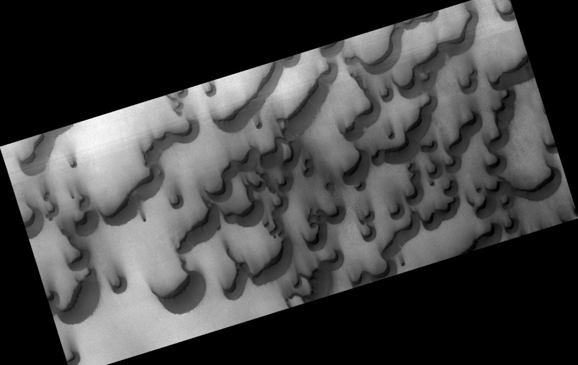 Les dunes présentent des structures géologiques remarquables. Étudiées par de nombreux chercheurs à travers le monde, elles offrent de précieux indices sur le passé et l’évolution du climat d’une planète. Ces montagnes de sable martien, ont été façonnées par des vents puissants, actifs il y a plusieurs milliers à plusieurs millions d’années.
