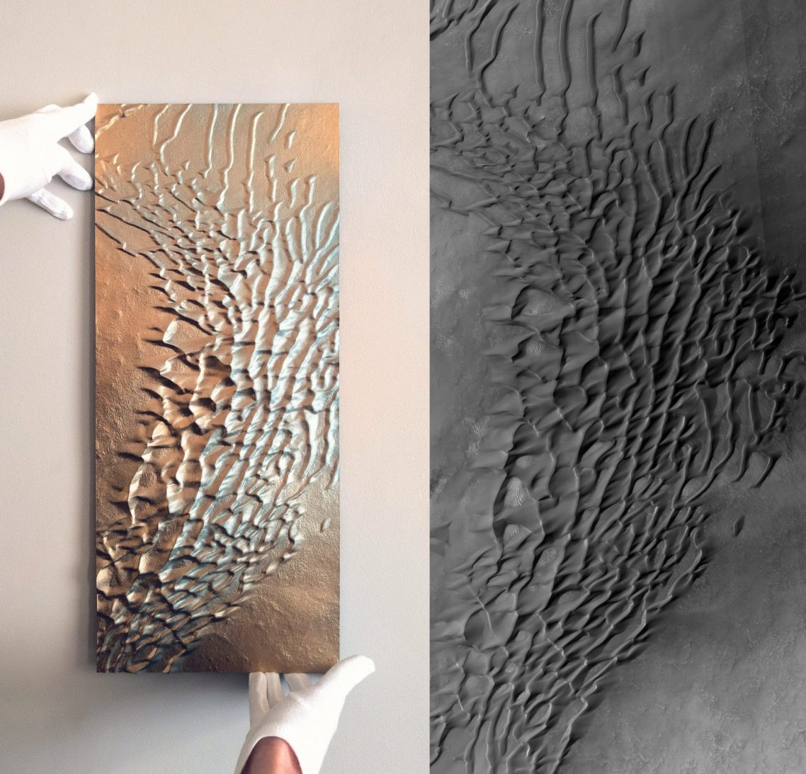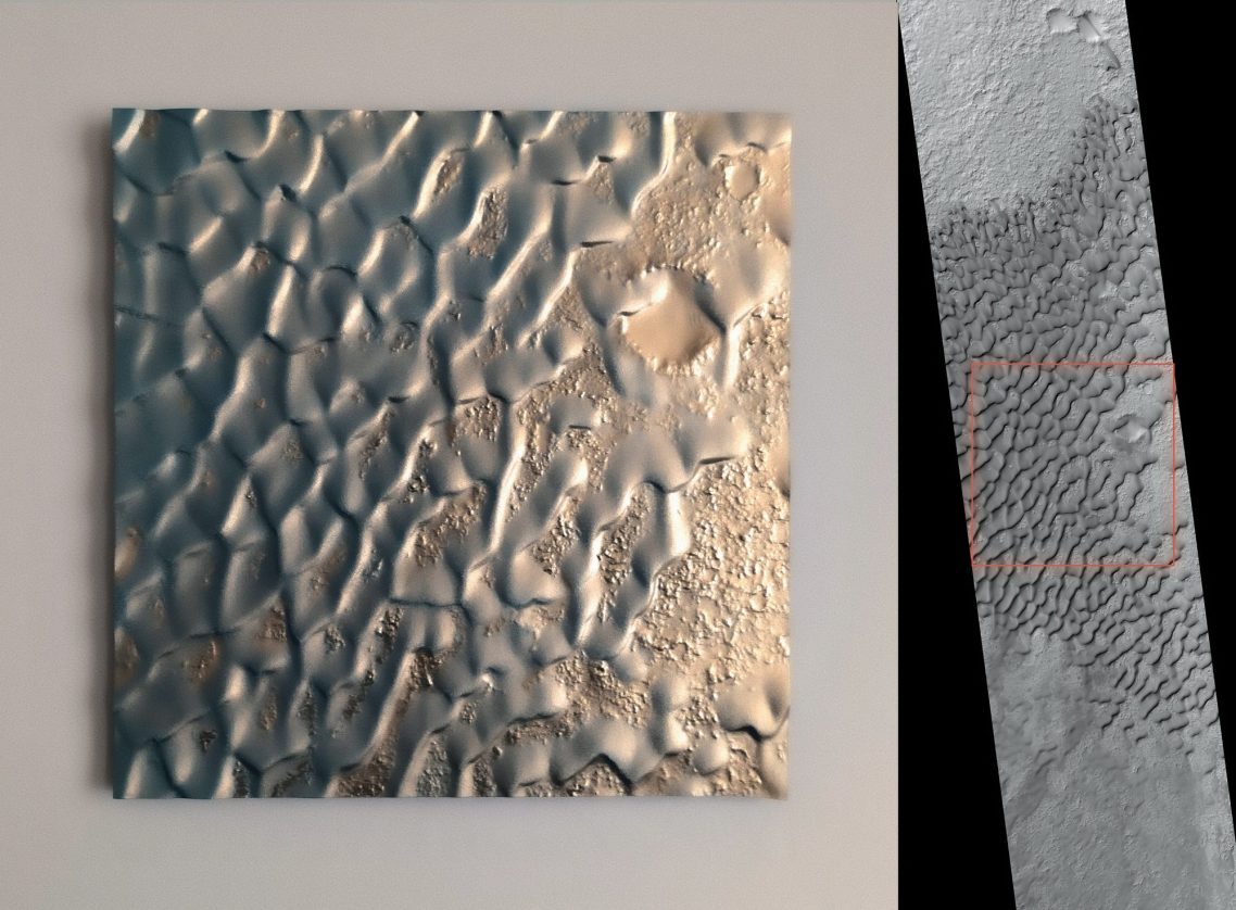 Les équipes du Lunar & Planetary Laboratory, basées en Arizona (États-Unis), dirigent les opérations de la sonde MRO (Mars Reconnaissance Orbiter). Elles mettent librement à disposition du public des milliers d’images et de relevés topographiques de la surface martienne, capturés par l’instrument HiRISE et analysés par la communauté scientifique à l’aide de logiciels 3D. J'ai contribué au programme HiRISE en développant ces topographies à l'aide des nouvelles technologies de fabrication numérique.